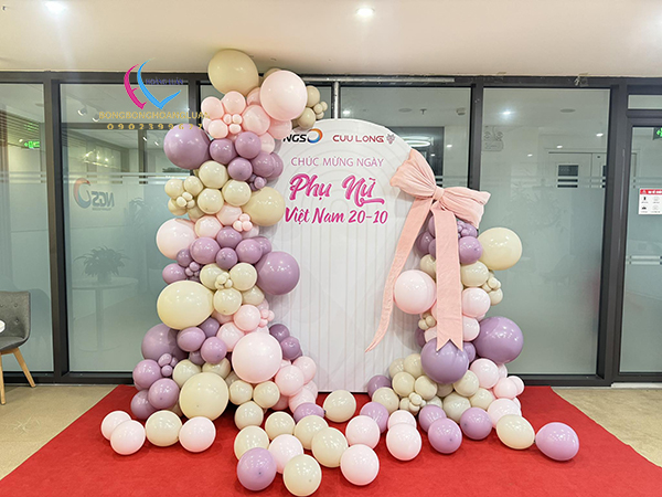 Trang trí 20/10 cho cơ quan xí nghiệp hoặc siêu thị, trung tâm thương mại với bóng bay không chỉ đẹp mà còn có chi phí rẻ, cùng với đó là tính ứng dụng cao.
