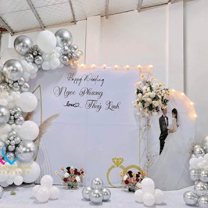 Backdrop chụp ảnh cưới tone trắng – bạc
