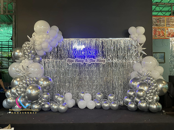 - Bóng bay: Sử dụng các gam màu trung tính gồm trắng sữa mix chrome bạc.