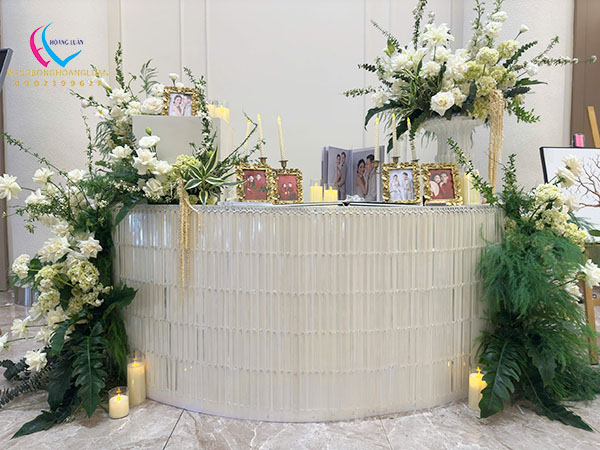 Trang trí backdrop đám cưới bằng hoa tươi là sự hoà quyện kết hợp công nghệ thi công backdrop bằng formex với hoa tươi và công nghệ ánh sáng tạo nên không gian lung linh đẹp mắt luôn có sức hút với chủ nhân bữa tiệc và khách mời tham dự. Sự sang trọng và hiện đại không phải thể hiện qua việc có quá nhiều thứ trang trí trên backdrop mà thông qua phong cách thiết kế, tone màu, sự kết hợp giữa các phụ kiện trang trí tạo nên một tổng thể hài hoà, sang trọng nổi bậc tính thấm mỹ của sản phẩm.