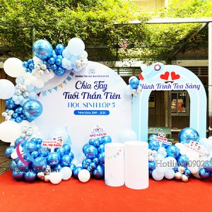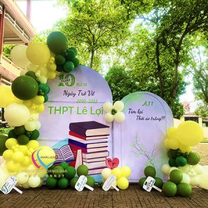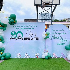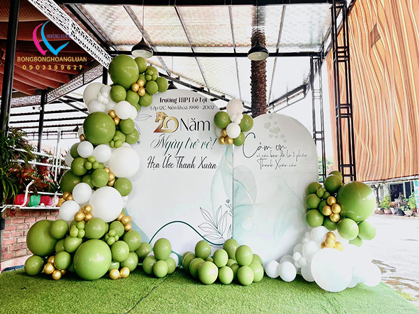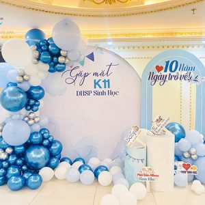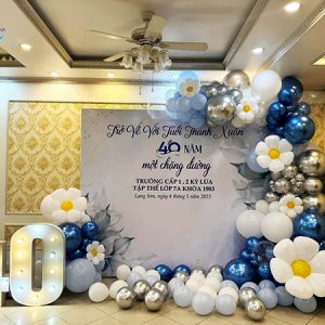 Dịch vụ trang trí họp lớp – kỷ yếu bằng backdrop bóng bay nhằm tăng tính thẩm mỹ, chỉnh chủ cho sự kiện. Backdrop có hình tròn, hình chữ nhật kích thước lớn, nhỏ đa dạng. Ở phía viền ngoài được trang trí bằng bóng bay tạo hình nghệ thuật đẹp mắt.
