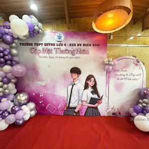 Những buổi hội ngộ của tập thể sau khi ra trường có ý nghĩa vô cùng quan trọng. Đây là sự kiện có đầy đủ các thành viên trong lớp xưa và cả thầy cô giáo cũ. Tại đây, mọi người có thể ôn lại kỷ niệm về một thời thanh xuân rực rỡ. Việc sử dụng phông họp lớp với thiết kế đẹp, có đầy đủ thông tin chương trình, tên lớp, niên khóa và câu slogan ý nghĩa sẽ giúp buổi tiệc hoành tráng và nổi bật hơn.