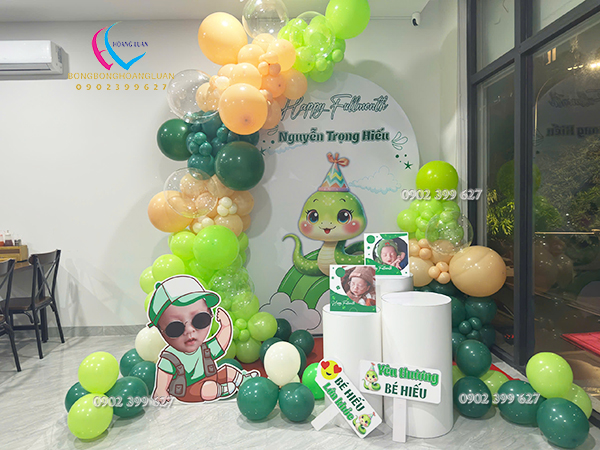 Background sinh nhật cho bé trai hay còn gọi là backdrop bong bóng được các nhận viên Hoàng Luân thiết kế thành một tác phẩm của nghệ thuật sắp đặt. Không chỉ khác nhau về chất liệu, màu sắc, backdrop bong bóng của Hoàng Luân còn có bố cục, cách bài trí, sắp xếp chi tiết sinh động.