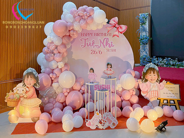 Bong bóng sinh nhật cho bé gái tông màu hồng là sự kết hợp hài hoà giữa bong bóng màu ảnh chibi phù hợp những nơi có không gian nhỏ nhưng vẫn đảm bảo tính thẩm mỹ cao, bắt mắt và thu hút làm phông nền check in độc đáo cùng bạn bè tạo nên những bức ảnh đẹp mắt, sáng tạo.