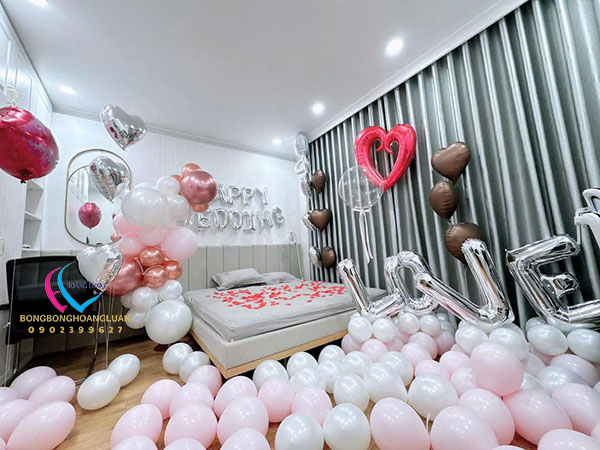 Cách trang trí sinh nhật phòng ngủ ấn tượng bằng bóng bay các bạn trẻ yêu thích, bởi phòng ngủ là nơi tình yêu sinh sôi nảy nở bền chặt bên nhau. Vào những ngày đặc biệt như sinh nhật,tân hôn, kỹ niệm ngày kết hôn….bạn có thể trang trí đơn giản nhưng không kém phần lãng mạng, lung linh phòng ngủ bằng những quả bóng bay nhiều màu sắc.