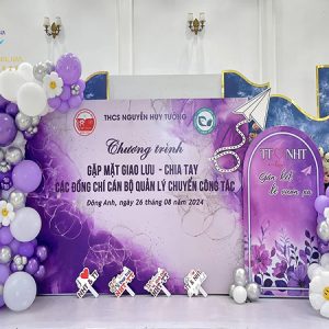 Decor background sự kiện được nhiều khách hàng lựa chọn bởi backdrop được đặt ở phần trung tâm sân khấu được thiết kế hài hòa với màu sắc, logo, tông màu chủ đạo của buổi họp lớp sẽ được tôn lên nổi bậc bằng những quả bong bóng xinh xắn đủ màu sắc sẽ làm cho bạn đi từ bất ngờ này đến bất ngờ khác. Sấn khấu, hội nghị, hội thảo, lễ hội, sinh nhật, tiệc cưới, khai trương…. không thể thiếu, banner, băng rôn, cờ nheo, cờ treo… .