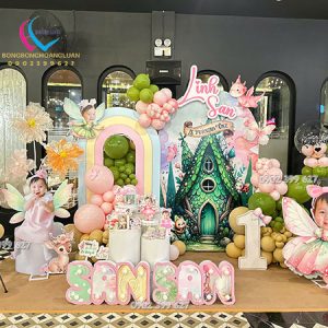 - Trang trí sinh nhật– thôi nôi: 3.00.000 ( 1 backrop kích thướt 2,5m x 2,5m) + trang trí bong bóng