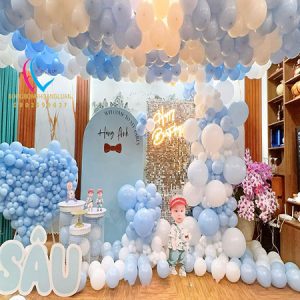 - Trang trí sinh nhật bé trai với backdrop bong bóng
