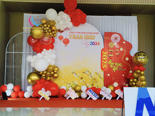Trang trí tiệc tất niên là phần quan trọng trong việc tạo nên thành công của sự kiện cuối năm. Công việc này sẽ giúp tạo ra không gian thú vị và phù hợp với bối cảnh của tiệc. Một bữa tiệc tất niên công ty được trang trí đẹp mắt sẽ có ấn tượng tốt với khách mời. Bàn tiệc lung linh với đèn trang trí, hoa tươi tinh khôi, và bảng thông tin sáng tạo sẽ ngay lập tức thu hút sự chú ý.