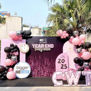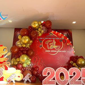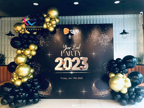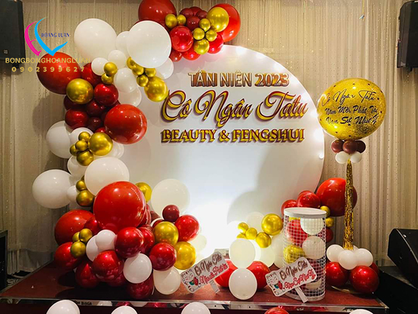 Trang trí backdrop tiệc cuối năm với bóng bay ấn tượng