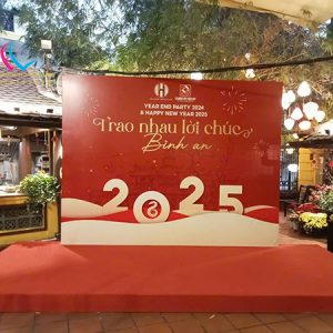 Trang trí backdrop tiệc cuối năm theo chủ đề