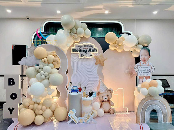 Trang trí sinh nhật bé trai với backdrop bong bóng cần phải có đầy đủ phụ kiện, công cụ cần thiết trong việc trang trí. Vì vậy để tăng tính thẩm mĩ, dịch vụ trang trí Hoàng Luân sẽ hỗ trợ, tư vấn cho bạn những mẫu trang trí phù hợp với không gian sự kiện.