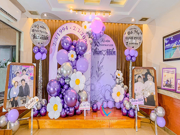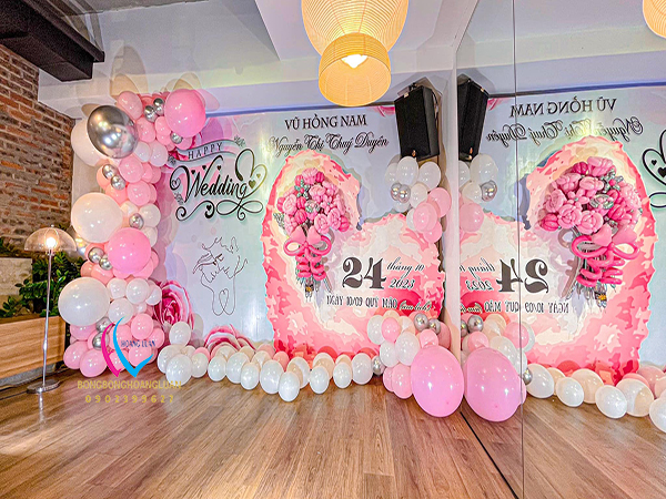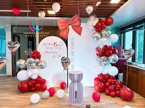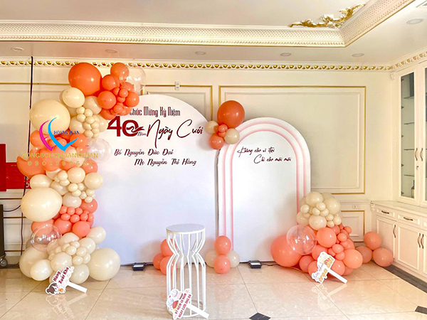 Trang trí tiệc kỷ niệm 20 năm ngày cưới với backdrop bóng bay được thiết kế bắt mắt sẽ khiến cho người thân, bạn bè đến tham dự sẽ cảm thấy sự ấn tượng. Backdrop không chỉ đơn giản là “bảng thông báo” kỷ niệm ngày cưới của cô dâu, chú rể mà còn là biểu tượng tượng trưng của ngày hạnh phúc, là nơi sẽ lưu lại toàn bộ những khoảng khắc, kỷ niệm đáng nhớ để tạo ra những bức ảnh đẹp.