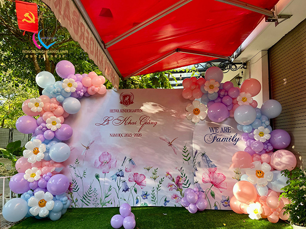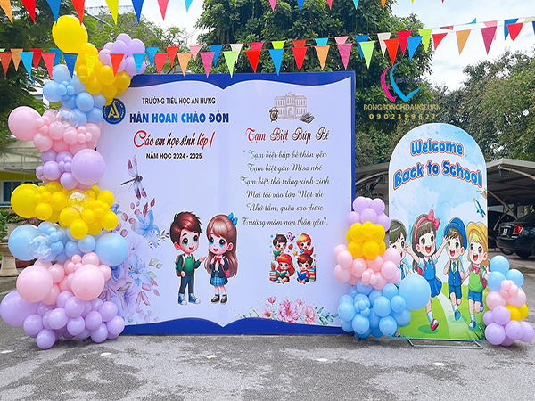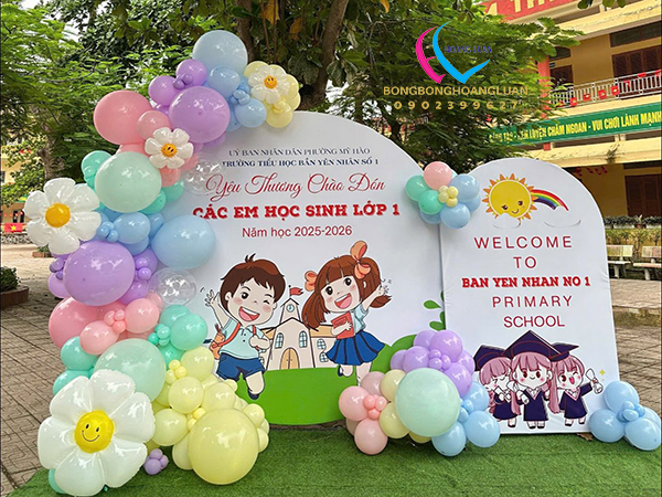 - Trang trí cổng chào: Việc trang trí cổng chào bong bóng tưởng chừng như đơn giản nhưng lại đóng vai trò hết sức quan trọng đối với buổi lễ khai giảng. Đây là một yếu tố nhỏ nhưng sẽ góp phần mang lại sự thành công của ngày tựu trường